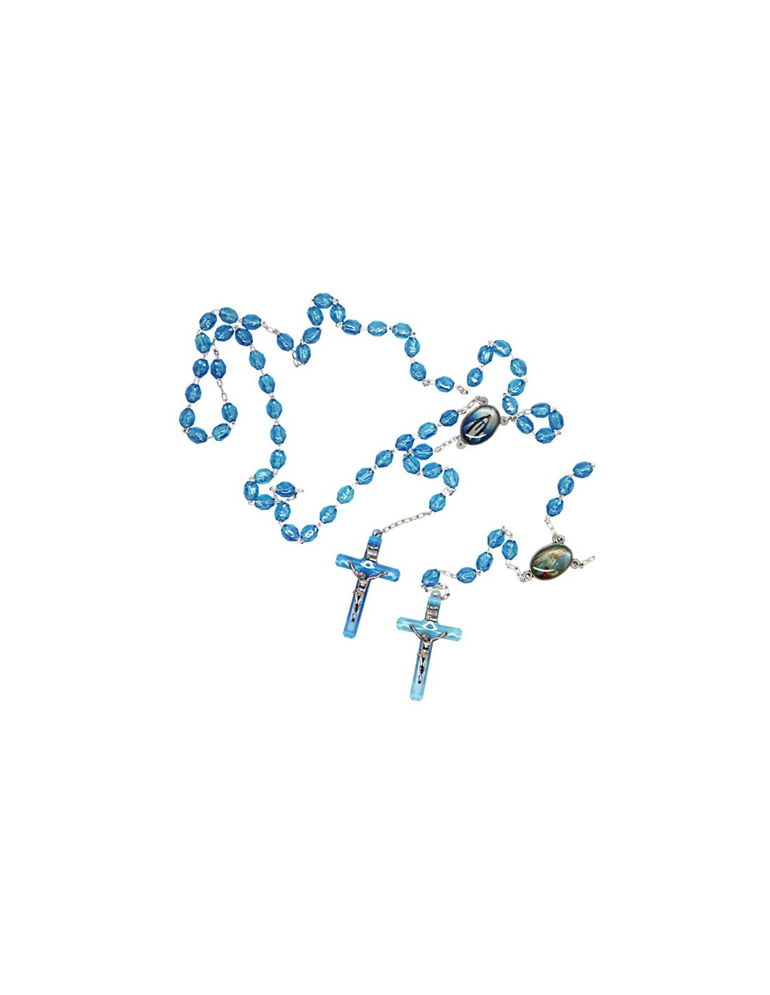 Price only for resellersChapelet en résine plastique bleu avec la Vierge Miraculeuse et l'apparition de lourdes