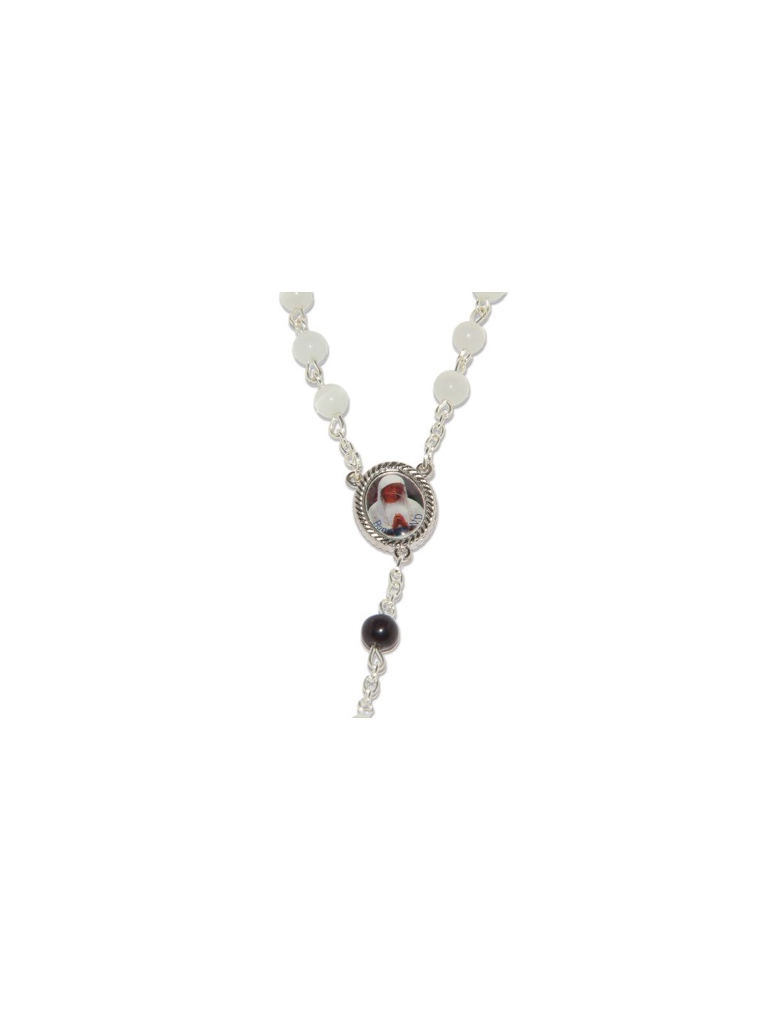 Chapelet Banneux pierre oeil de chat blanc et noir