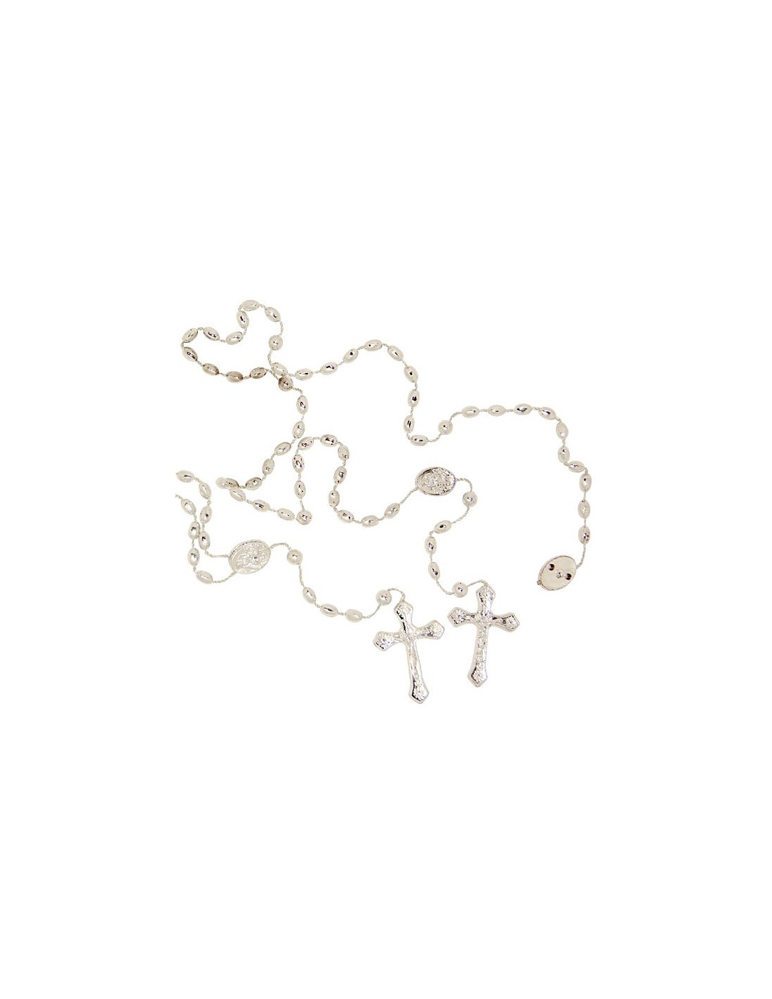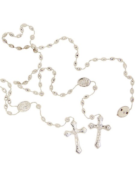 Confezione regalo con perline in metallo color argento, perle bianco perla e medaglia. Immagine del cuore e la Angelo Custode Medaglia: 20mm Rosario 46 centimetri perla: 8mm Peso: 60g codice: 11910-1