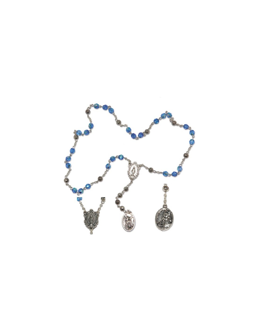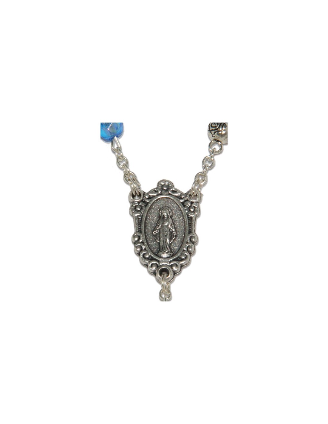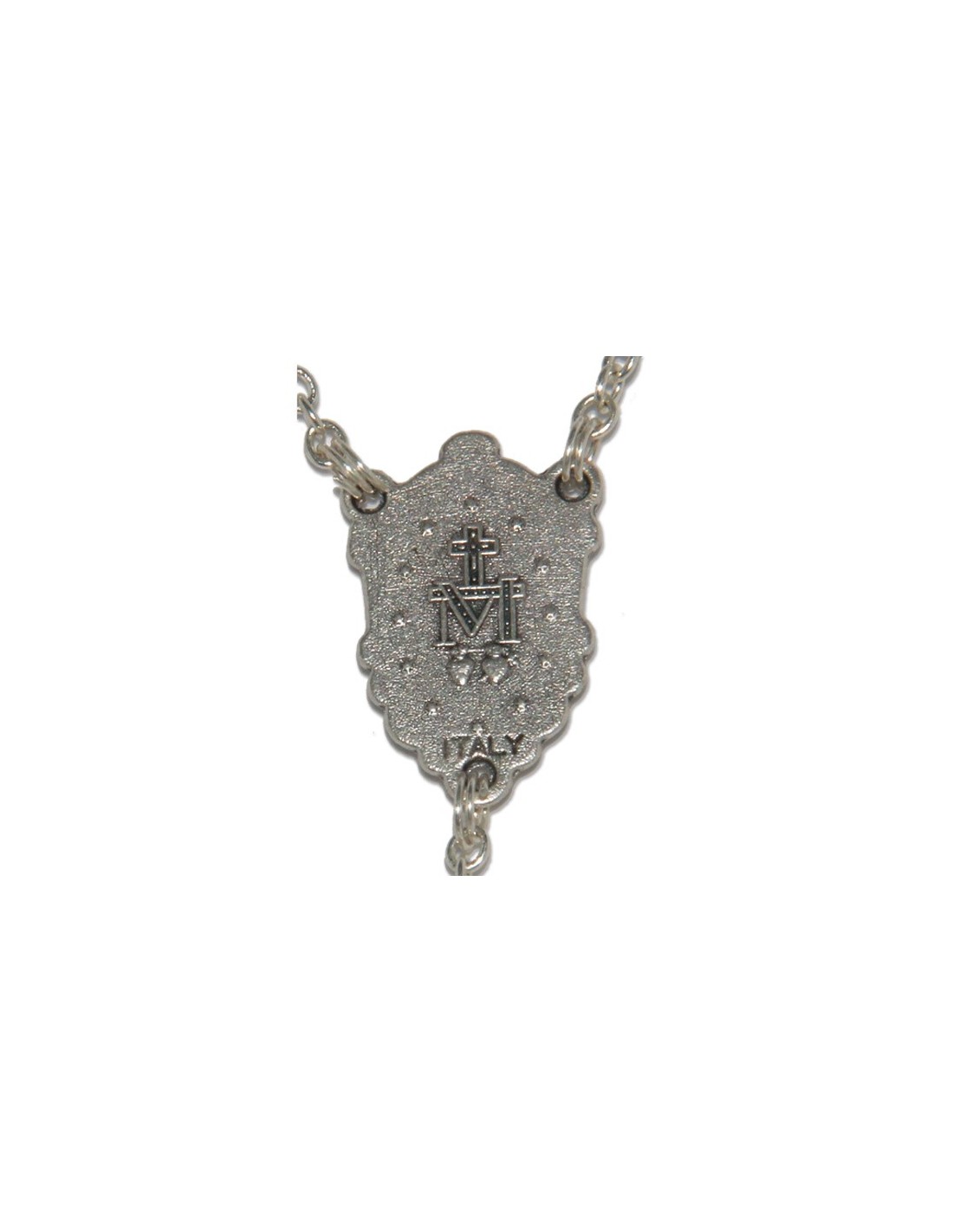 Confezione regalo con perline in metallo color argento, perle bianco perla e medaglia. Immagine del cuore e la Medaglia Angelo immagine medaglia : Rosario 46 centimetri perla: 8mm Peso: 60g codice: 11910-3