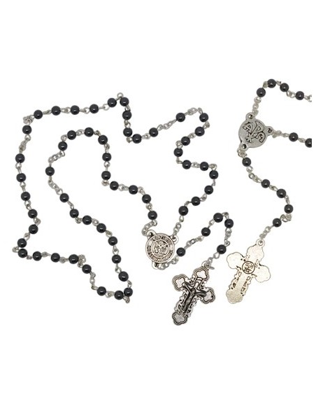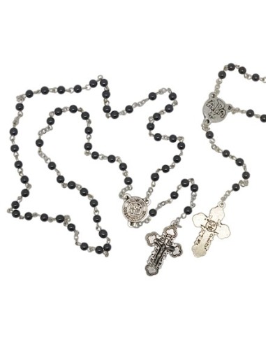 Confezione regalo con perline in metallo color argento, perle bianco perla e medaglia. Immagine del cuore e l'immagine medaglia Ange Medaglia di protezione : Rosario 46 centimetri perla: 8mm Peso: 60g codice: 11910-4