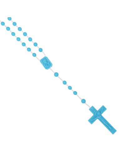 Rosario montato su catena in metallo argentato con perline a occhio di tigre. Il pezzo centrale è una medaglia alla vergine miracolosa con un simbolo mariano sul retro. La croce è in metallo e reca inciso il nome di Gerusalemme.Lunghezza: 58 cm