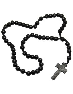 Rosario montato su catena in metallo argentato con perline a occhio di tigre. Il pezzo centrale è una medaglia alla vergine miracolosa con un simbolo mariano sul retro. La croce è in metallo e reca inciso il nome di Gerusalemme.Lunghezza: 58 cm