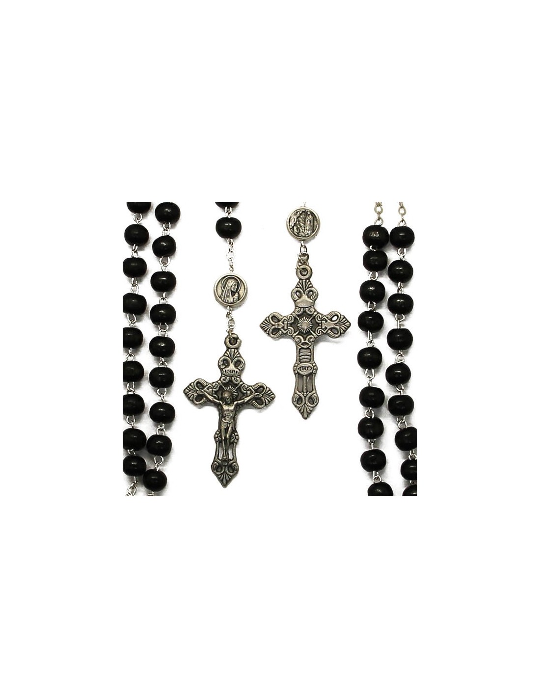 Rosario montato su catena in metallo argentato con perline a occhio di tigre. Il pezzo centrale è una medaglia alla vergine miracolosa con un simbolo mariano sul retro. La croce è in metallo e reca inciso il nome di Gerusalemme.Lunghezza: 58 cm