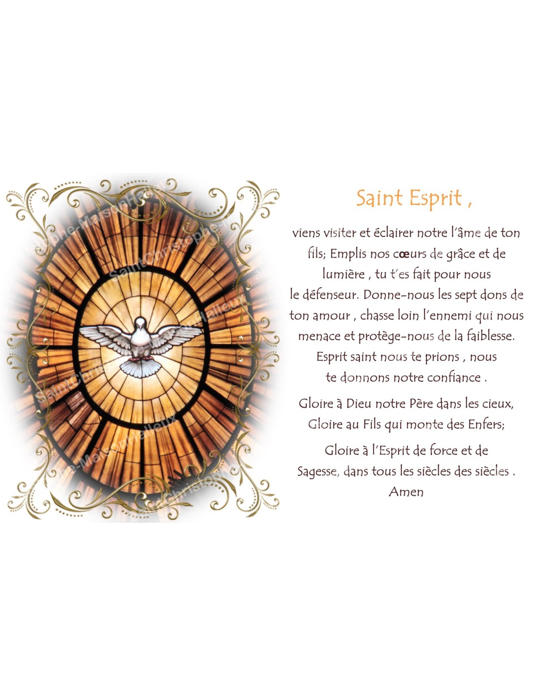 L'adesivo raffigura lo Spirito Santo, rappresentato da una colomba aureolata di luce in stile vetrata di chiesa, con una preghiera a lui dedicata.