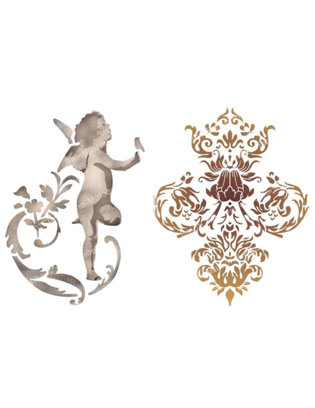 L'adesivo è un'immagine decorativa di un angelo, un cherubino, con motivi barocchi e lavorati nei toni del grigio e del marrone. Un oggetto decorativo con un tocco spirituale ed elegante.