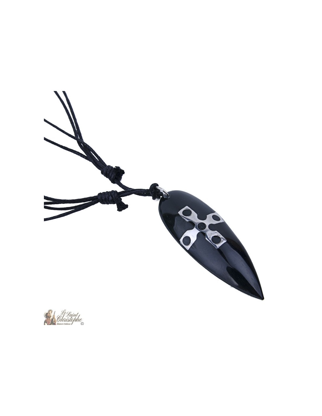 Pendente cavo con tavola intarsiato metallo resina color argento croce.