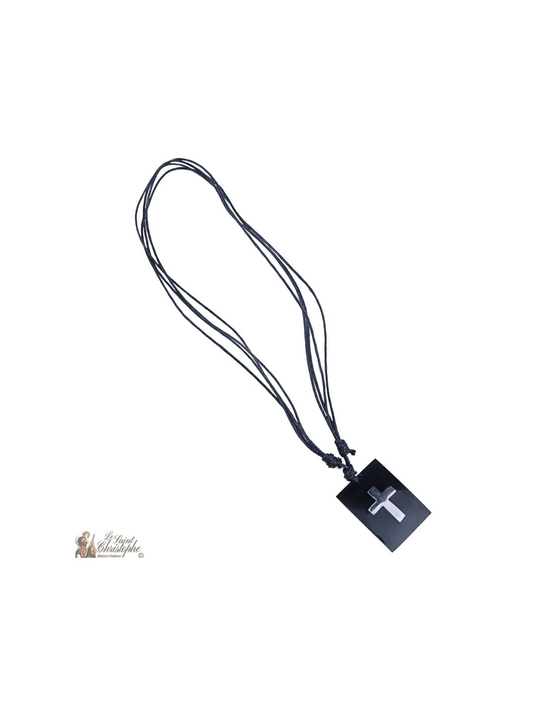cavo collana - piastra nera con croce