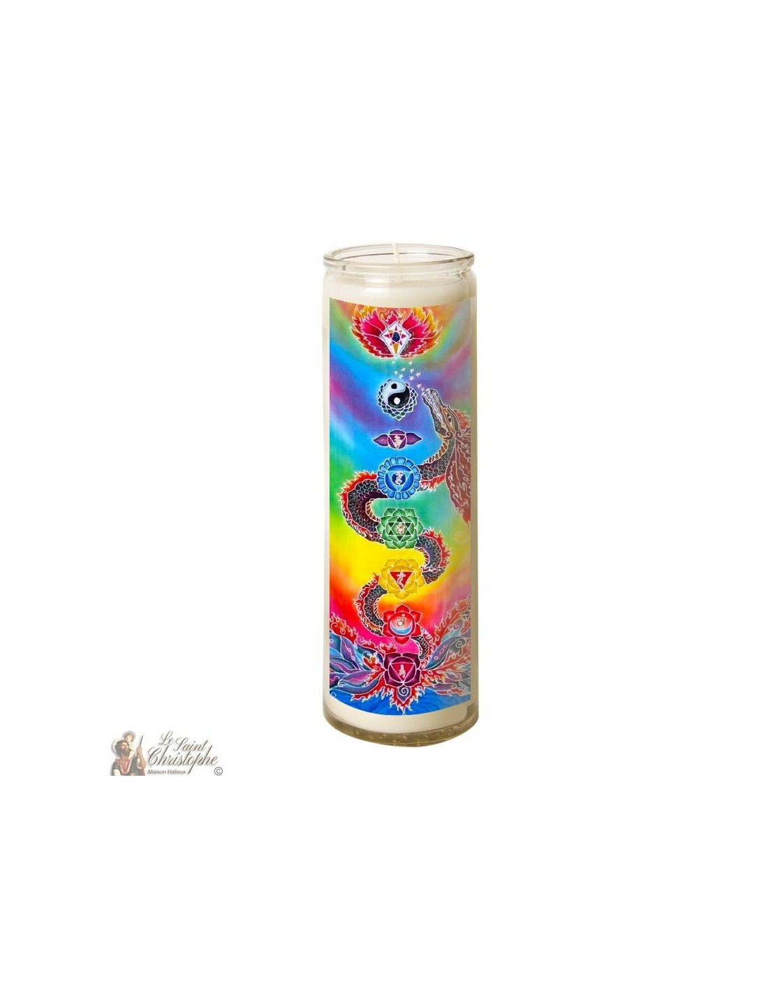 Candela 7 giorni in vetro Chakras drago