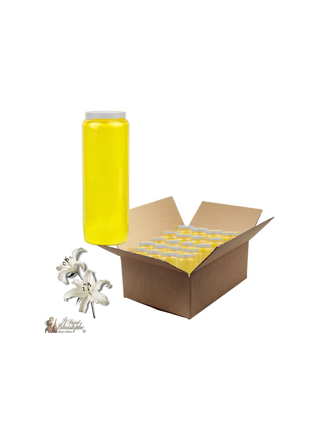 Una scatola contiene 20 candele. 56 scatole costituiscono un pallet completo.Peso : 10kg700Dimensioni: 34x28x20 cm