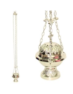 Incensiere con il colore argento a catena, lavorato a mano, con coperchio sormontato da una croce.Dimensioni contenitore: 11cmCon la catena di 40 cmPeso: 450 grCodice: 091961
