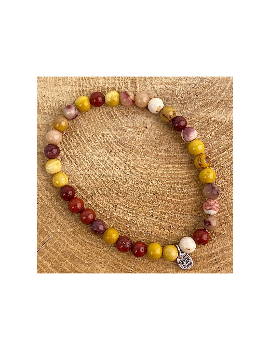 Price only for resellersBracciale in filo elastico con pietre naturali di diaspro mokaïte. Accompagnato da un piccolo charm in argento, questo braccialetto dà un tocco morbido e sereno al tuo polso.