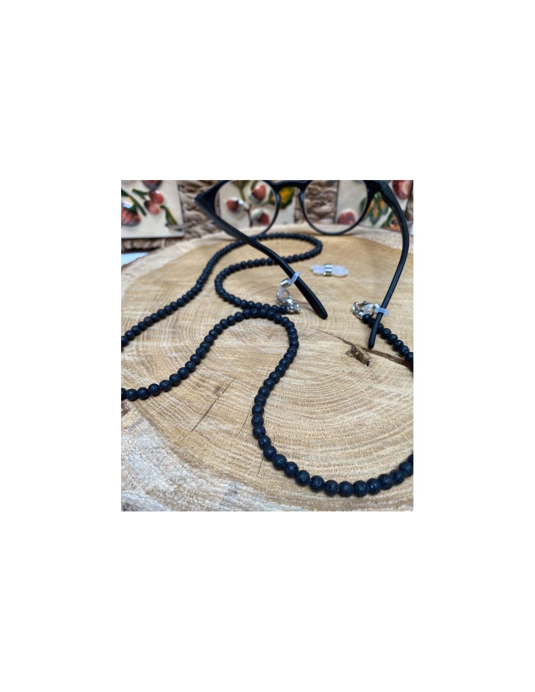 Questo cordoncino per occhiali è un accessorio elegante e pratico. Pratico per tenere gli occhiali senza doverli indossare, chic grazie alle perle di pietra lavica, una pietra pregiata rinomata in litoterapia per le sue virtù.