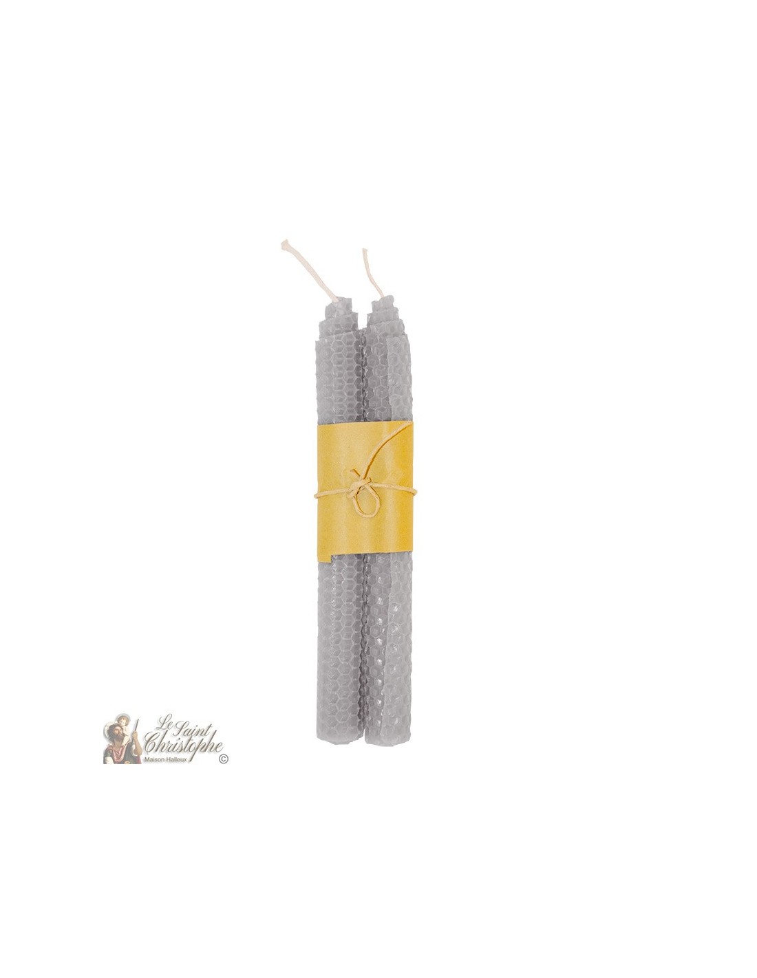 Price only for resellersCoppia di candele di desiderio colorate nella massa in grigio. La cera è arrotolata e ricoperta da un motivo esagonale che ricorda un alveare.