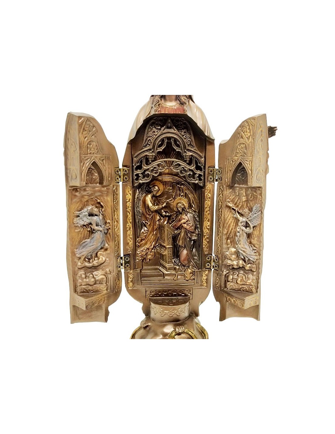 Price only for resellersStatua della Vergine Maria in piedi, apribile in trittico, realizzata in resina patinata bronzo.