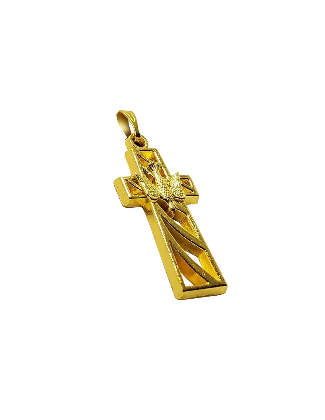 Price only for resellersCiondolo a forma di croce con il simbolo dello Spirito Santo. Il ciondolo è realizzato in metallo pregiato placcato oro. La colomba dello Spirito Santo e la croce sono in stile moderno.