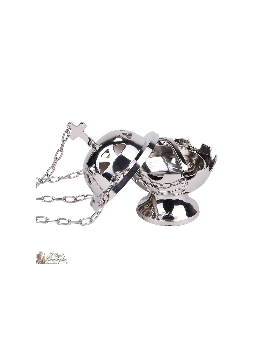 Mass Wierookvat met ketting, zilver metaal.