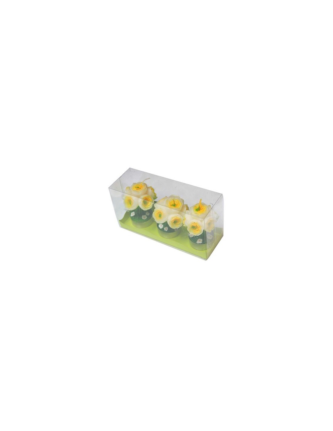 Doos van 48 sets van 4 MH kuikengeelkaarsen, gekleurd in de massa. 25 cm hoog, ze geven geen geur of rook af en druipen niet.Brandduur: ongeveer 8 uur.