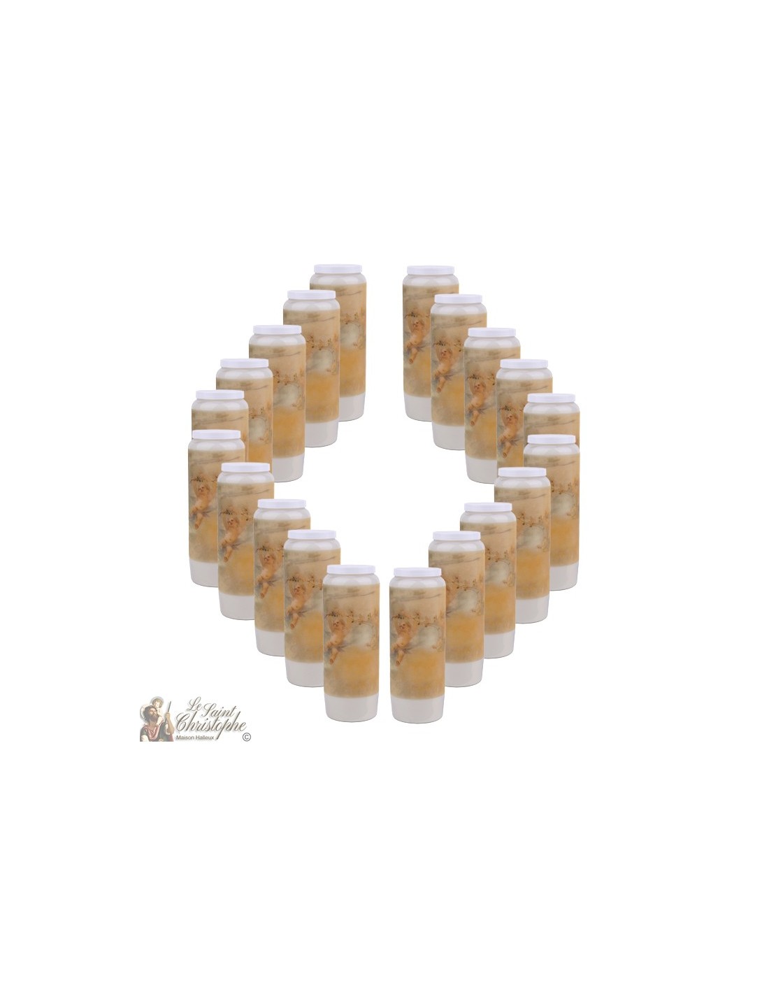 (20 neutrale noveenkaarsen en 20 stickers zullen in de doos zitten)