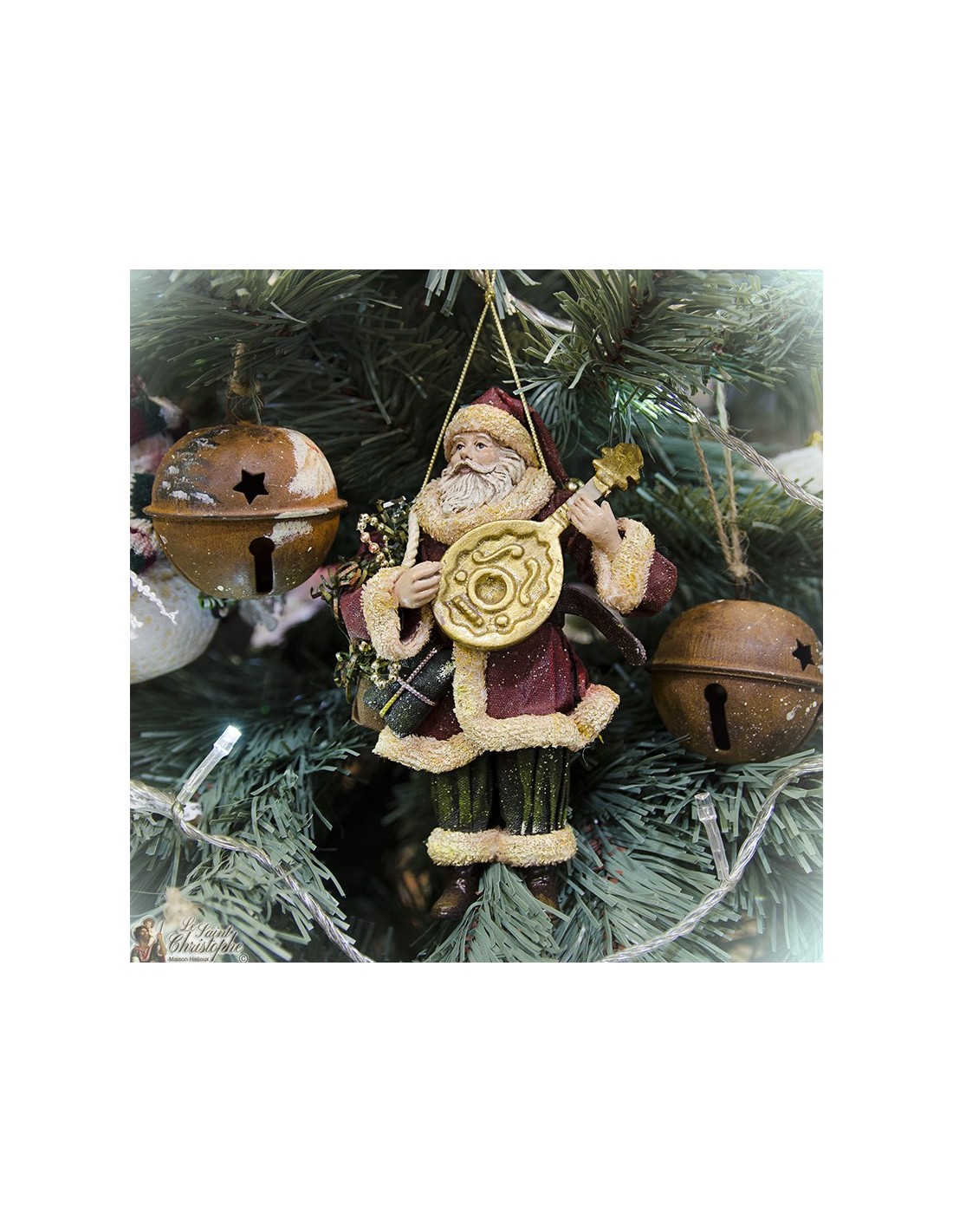 Price only for resellersFather Christmas Tree Decoration muzikant. Realisatie op de hand stoffen en mooie afwerking hars.