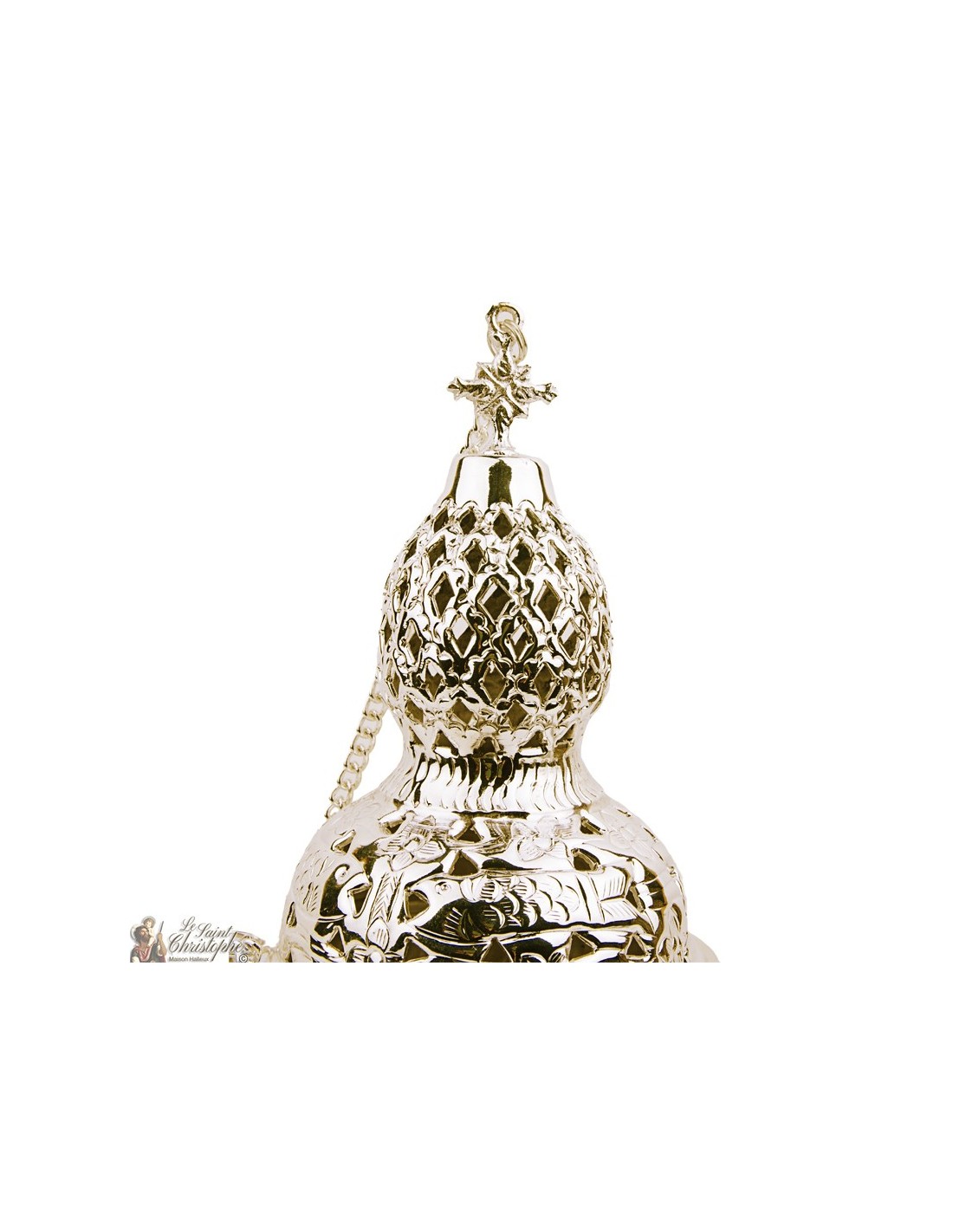 Price only for resellersMooie gouden wierookvat met kruis te hangen. Geheel gebeeldhouwd en met de hand gemaakt.