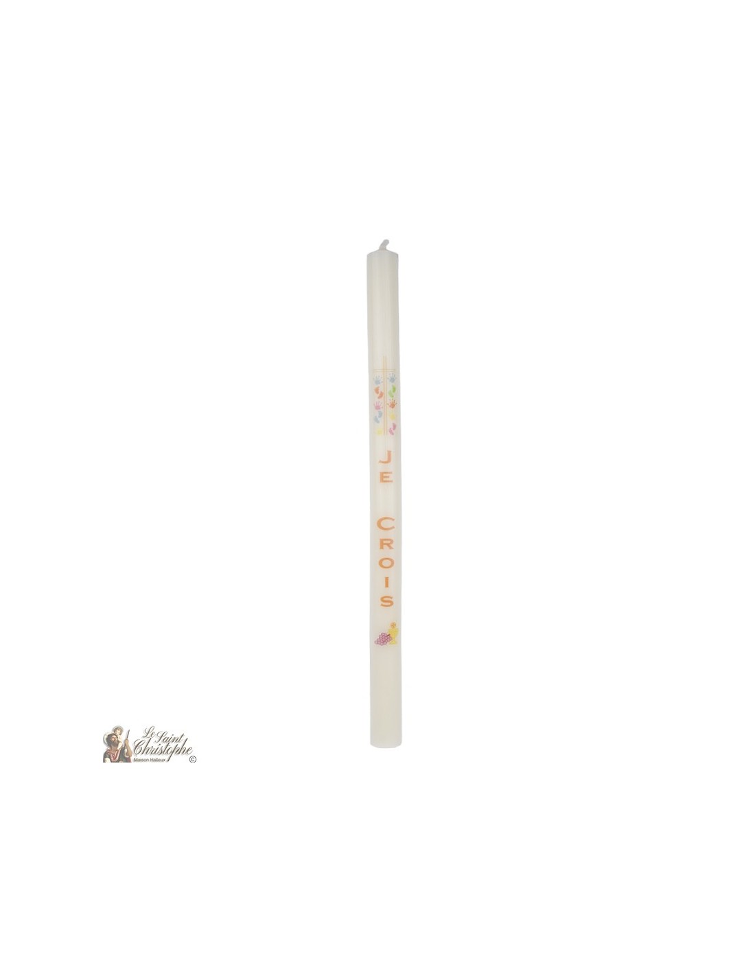 Communie kaars Beigeof wit - 40cm - kruis en kelk