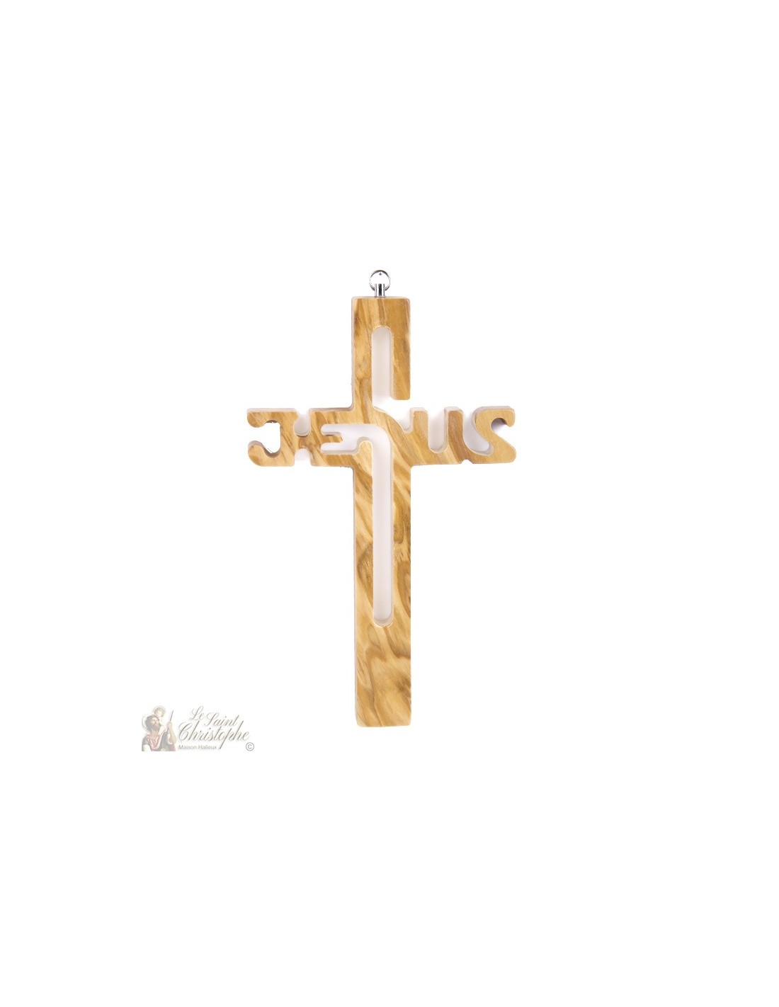 Kruis van St. Damianus in hout, hoogte 14,5 cm. De MDF-houten platen geven een 3D-diepte-effect, waardoor de figuur van Christus wordt benadrukt.Gewicht : 30 gr