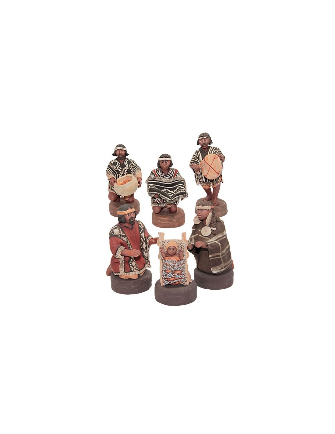 Complete kerststal met de figuren Jezus, Maria en Jozef, in een kerstboom van crèmekleurig en goudkleurig terracotta met gouden glitters, met de hand gemaakt.Deze kleine kerststal is een ideale kerstversiering, met prachtige afwerkingen.Hoogte: 7,5 cm