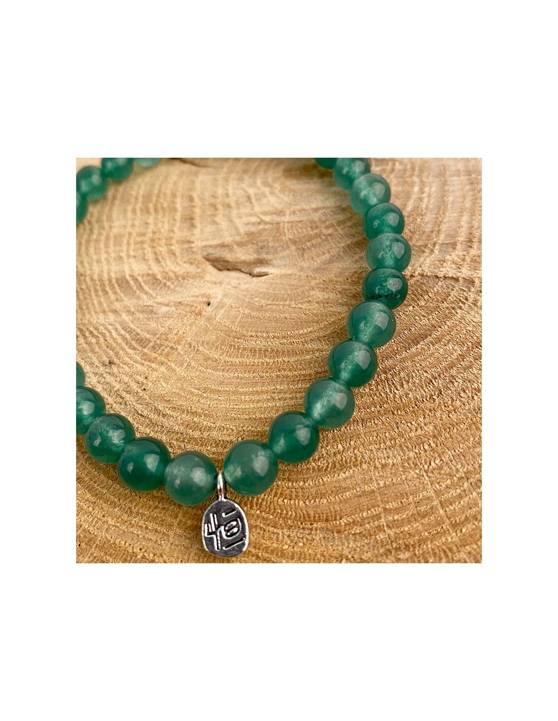 Price only for resellersArmband van elastisch draad gemaakt van aventurijn, een fijne natuursteen. Vergezeld van een klein zilveren bedeltje, geeft deze armband een zachte en serene toets aan uw pols.