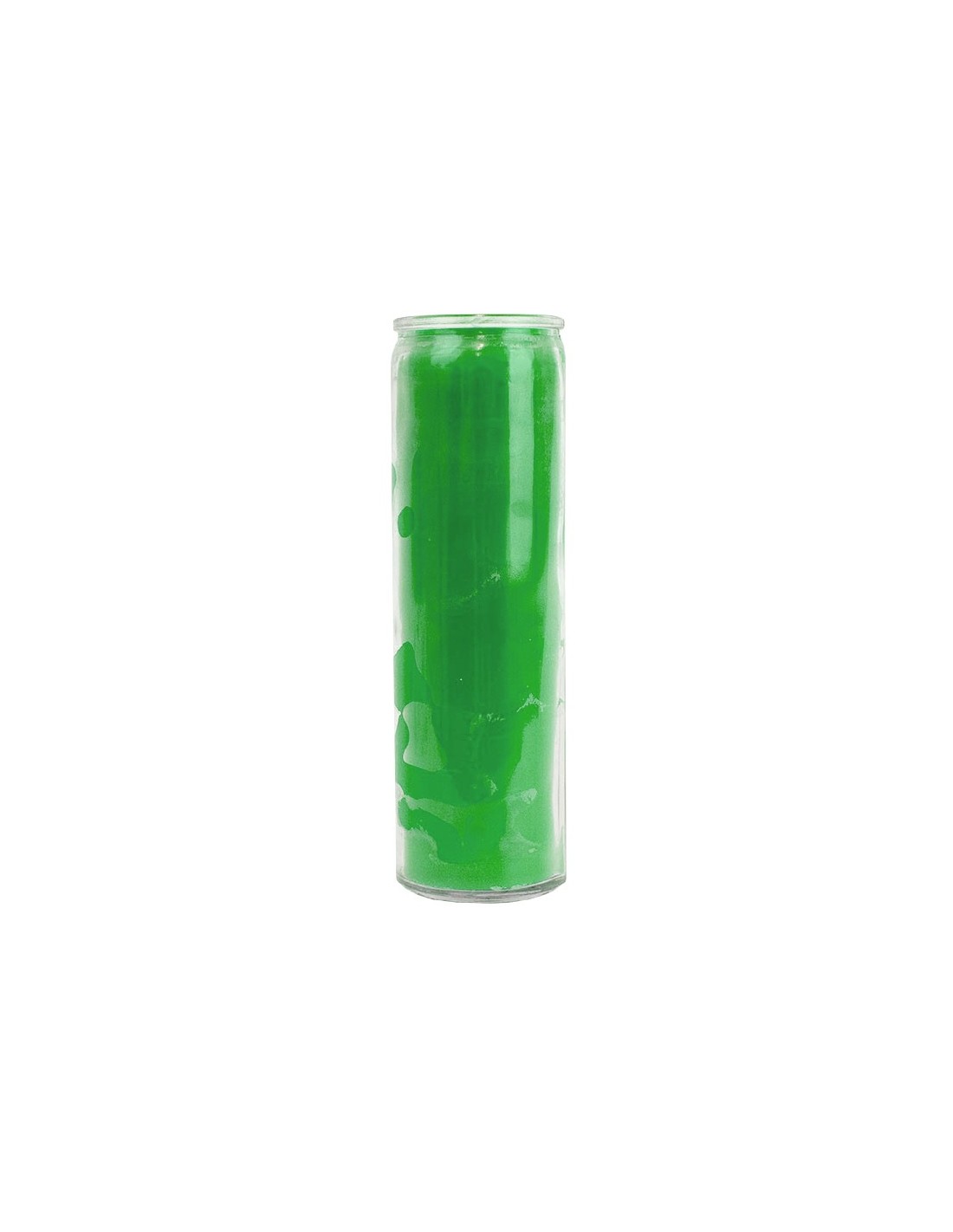 Kaars in een stevige glazen houder, die 168 uur kan branden, het equivalent van 7 dagen. De paraffine, die overal een mooie groene kleur heeft, vloeit in de container en geeft tijdens de verbranding een fotofore effect, waarbij de vlam door het dunne laagje was schijnt. De kaars kan worden gebruikt voor het eenvoudige plezier van decoratie of voor meer spirituele doeleinden zoals gebed, meditatie of esoterie.