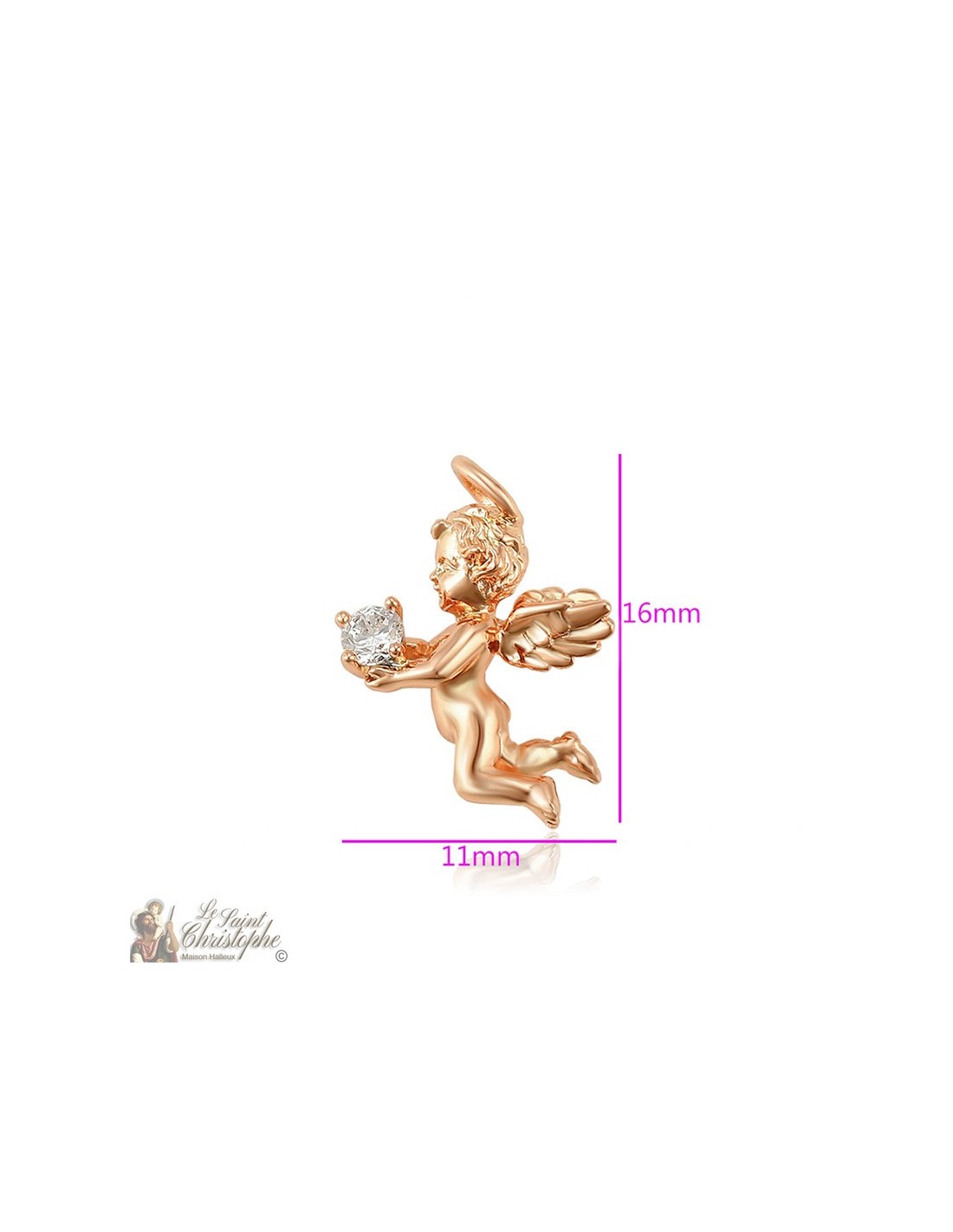 Deze discrete en fonkelende hanger stelt een cherubijn voor die een kristal vasthoudt. Met zijn licht rozige goudkleur kan het engeltje worden gecombineerd met een brede waaier van kettingen en halskettingen.